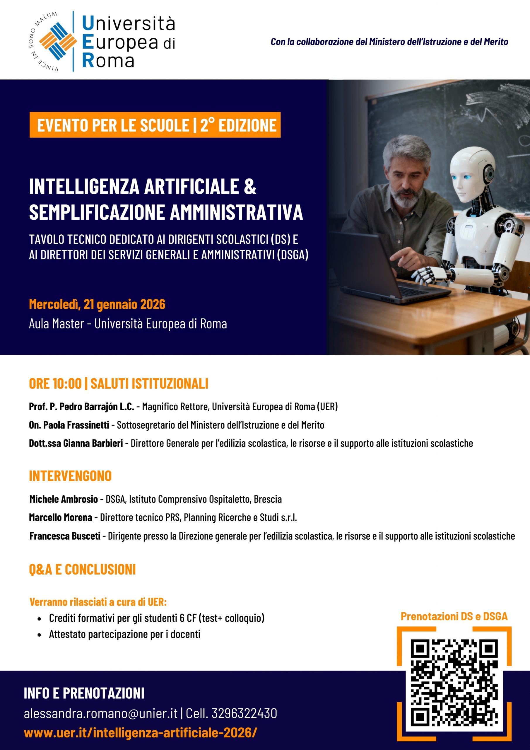 Obiettivo: approfondire i temi della semplificazione amministrativo-contabile nelle segreterie scolastiche. Verranno presentati strumenti innovativi, buone pratiche e soluzioni basate anche sull’intelligenza artificiale, utili per ottimizzare la gestione burocratica e migliorare l’efficienza dei processi amministrativi.