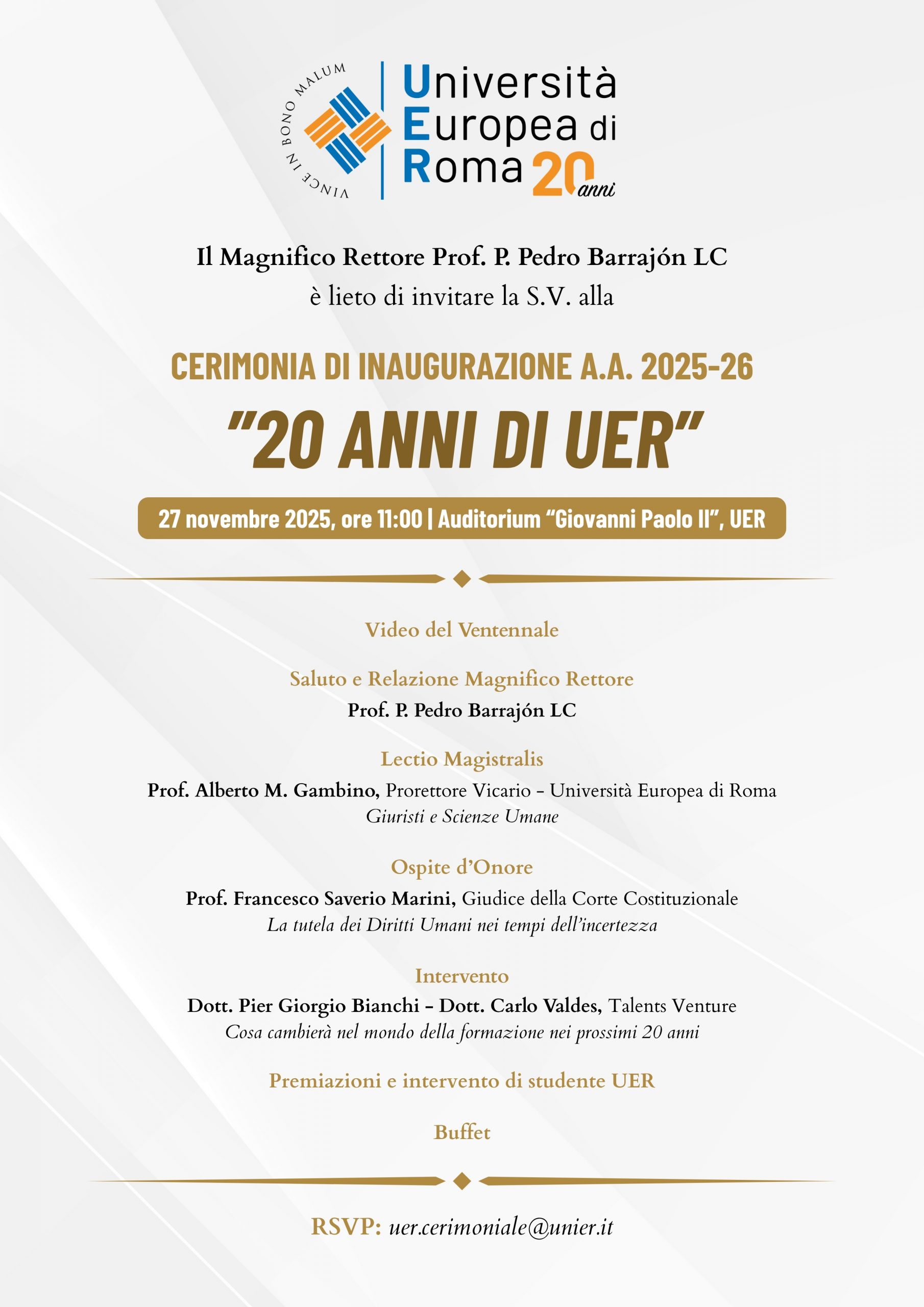 Si terrà il 27 novembre 2025 alle ore 11, nell’Auditorium Giovanni Paolo II, la Cerimonia di Inaugurazione dell’Anno Accademico UER 2025/26.